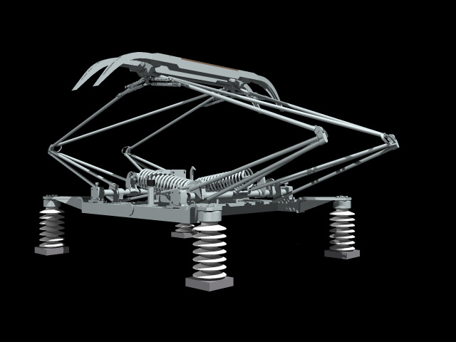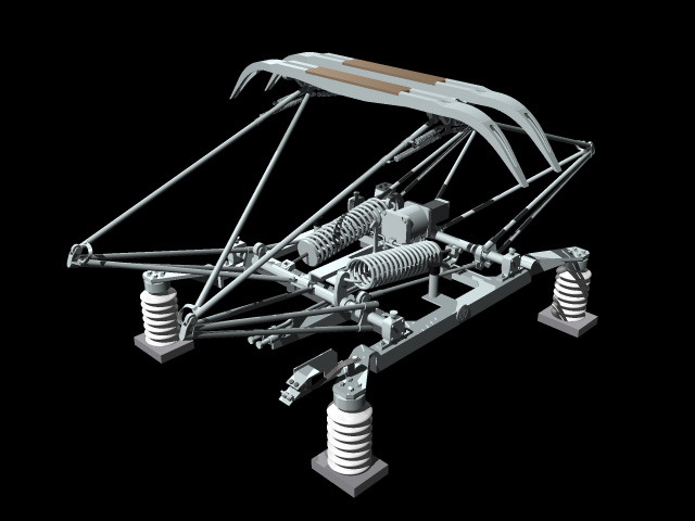 VectorWorksのトレ−ス図のうち、パンタグラフ部分のみを抽出し、それを全てグループ解除→3D多角形に変換を実行した後にSTRATA書き出しで書き出したものをSTRATA 3Dで読み込みます。